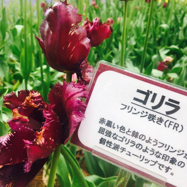 めぐりん ゴリラという品種のチューリップ見てきたよ ガウェインはただモデルになってくれているだけです 世羅高原農場 チューリップ祭り